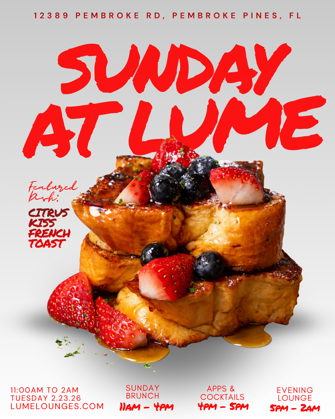 Ease into your Sunday with Lume brunch favorites, daily specials, and a menu curated for comfort and flavor.