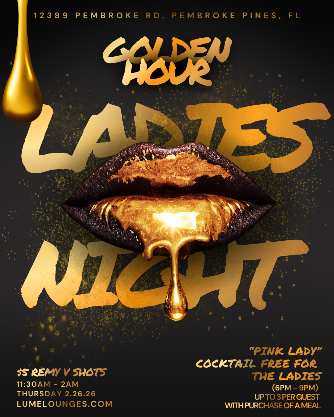 Celebrate Ladies Night every Thursday with complimentary Pink Lady Cocktails from 5PM–8PM and $5 Remy Shots. Gather the girls, enjoy the music, and elevate your night the Lume way.