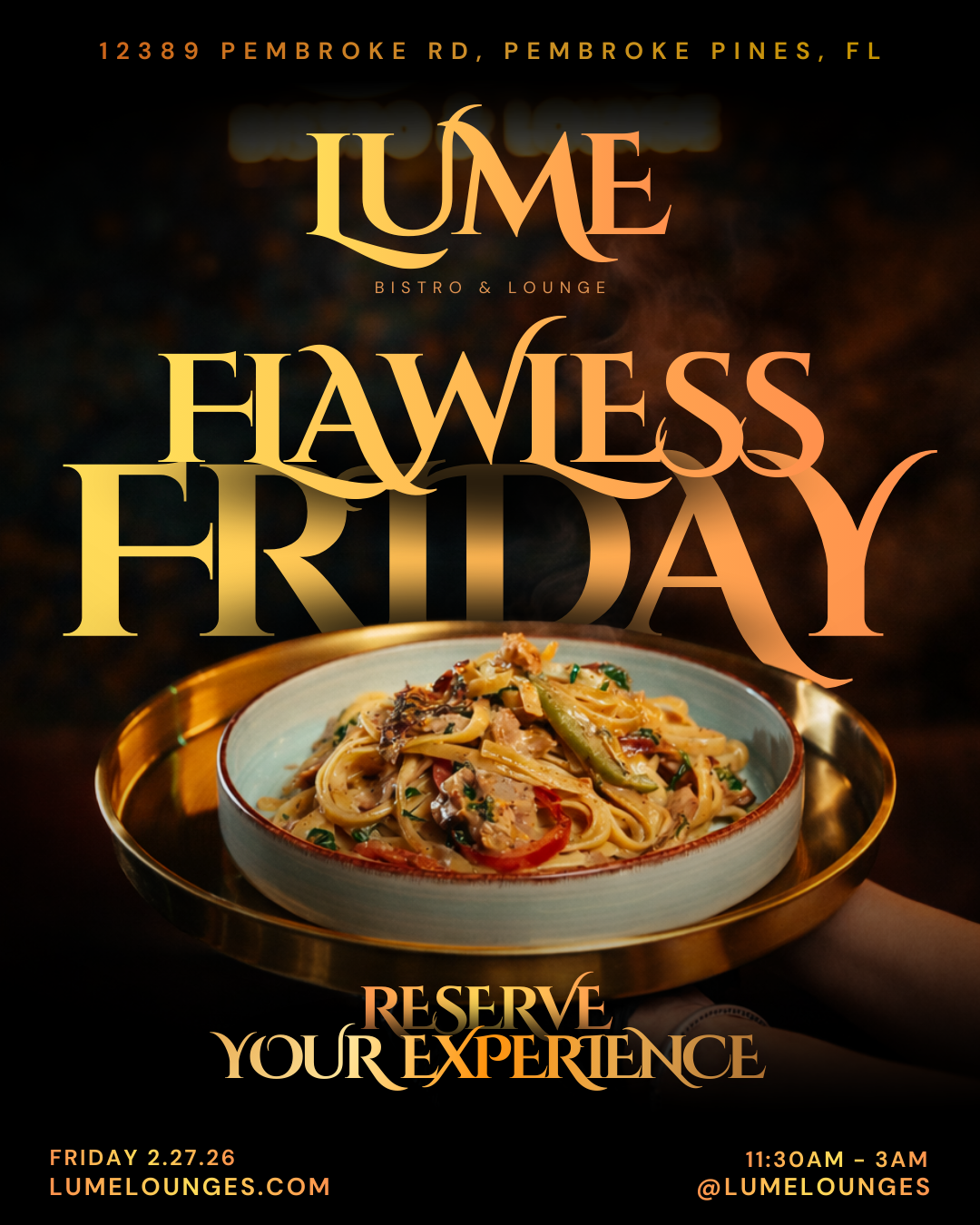 End the week flawlessly with after-work specials, handcrafted cocktails, and impeccable vibes. Fridays at Lume are where the energy rises, the crowd gets bold, and the weekend officially begins.